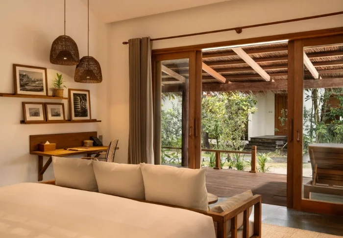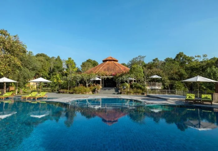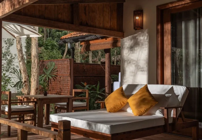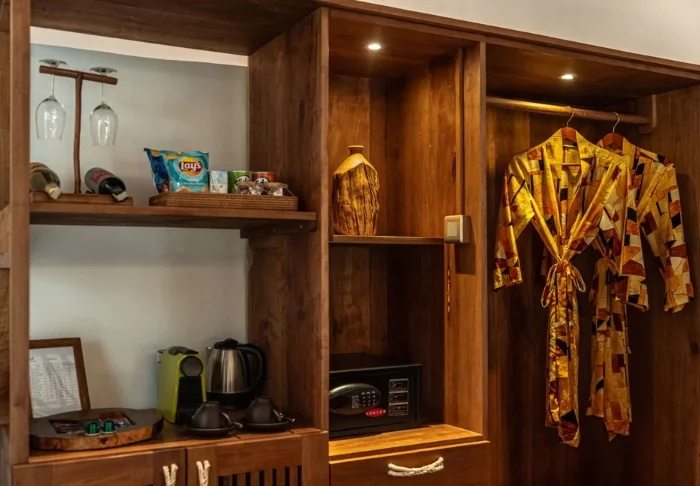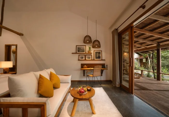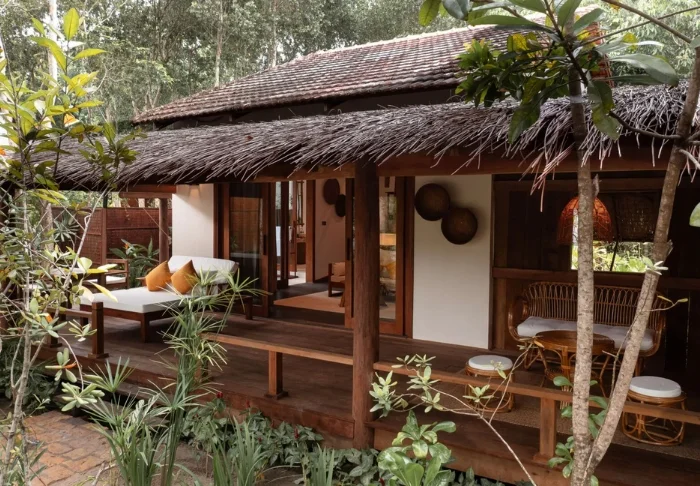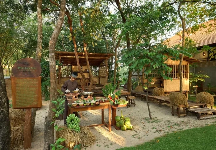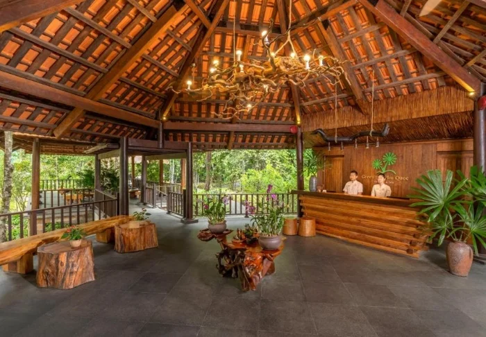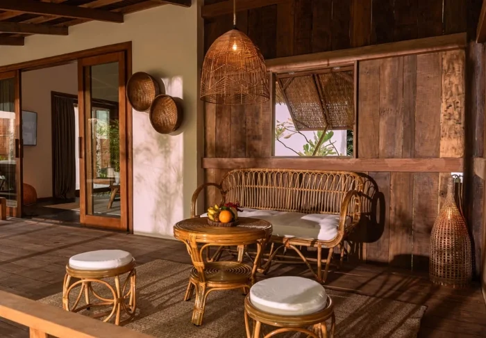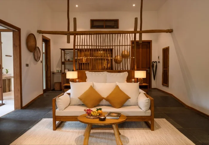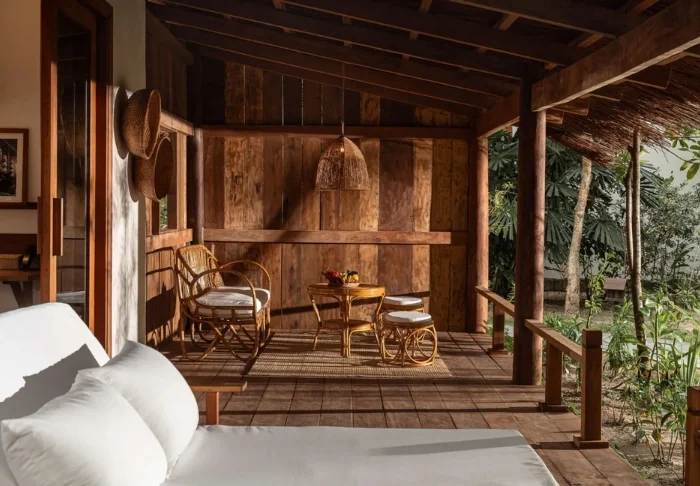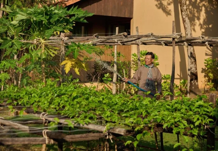 Resortet er økovennlig og bygget i naturlige og bærekraftige materialer. Mesteparten av møblene på resortet er laget av fint, mørkt tre på resortets eget snekkerverksted.