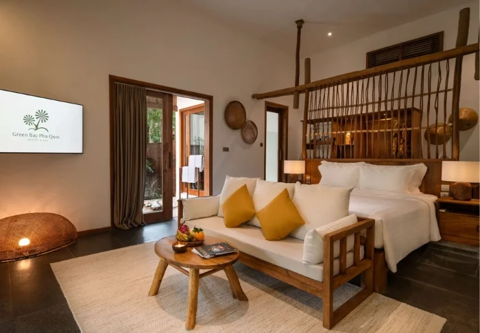 Green Bay Phu Quoc Resort & Spa ligger rett ved en av Phu Quocs beste strender på den vestlige siden av øya. Resortet ligger i naturskjønne omgivelser med masse grønn vegetasjon, hager, kjøkkenhager, en dam, palmer, skyggefulle trær og panoramautsikt over Thailandbukta.