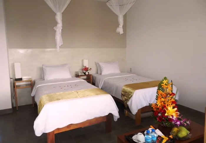 Som standard bor du i en Garden View Bungalow, hvor rommet er enkelt innredet med alt du trenger for oppholdet. Her er det enten dobbeltseng eller to enkeltsenger med myggnett, og rommet har aircondition, minibar, Wi-Fi, sikkerhetsboks samt bad med dusj og toalettartikler. Fra din private terrasse har du utsikt til de grønne omgivelsene, slik at naturen alltid føles nær.