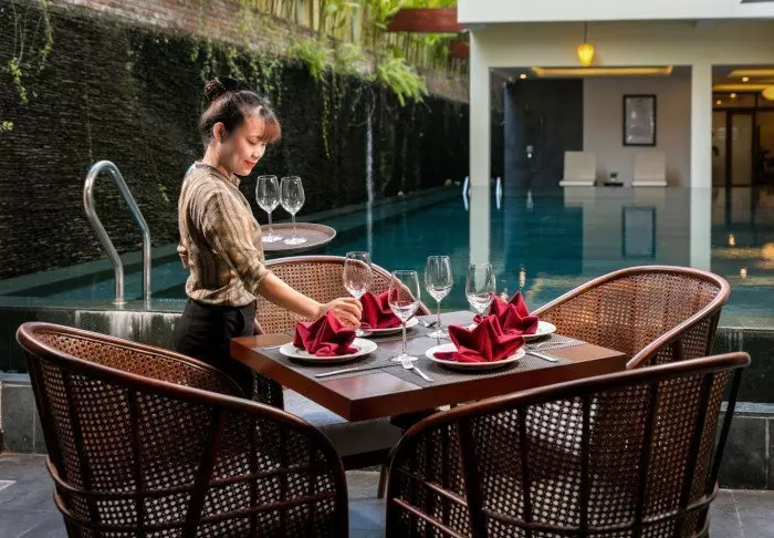 Frokosten spiser du på hotellets restaurant, og resten av dagen serverer restauranten et stort utvalg vietnamesiske klassikere og vestlige retter.