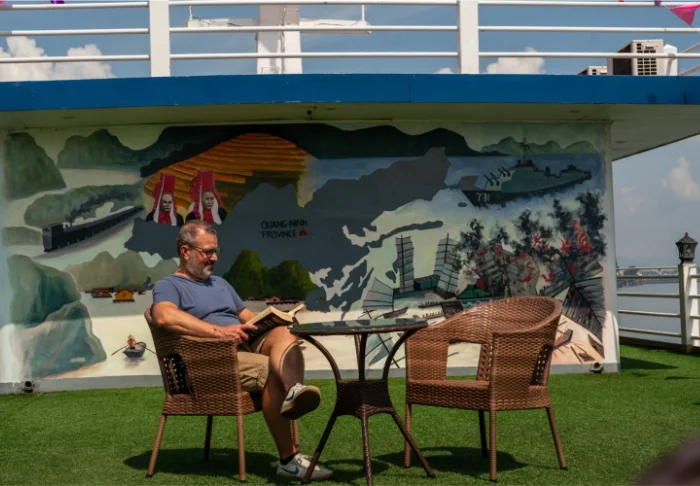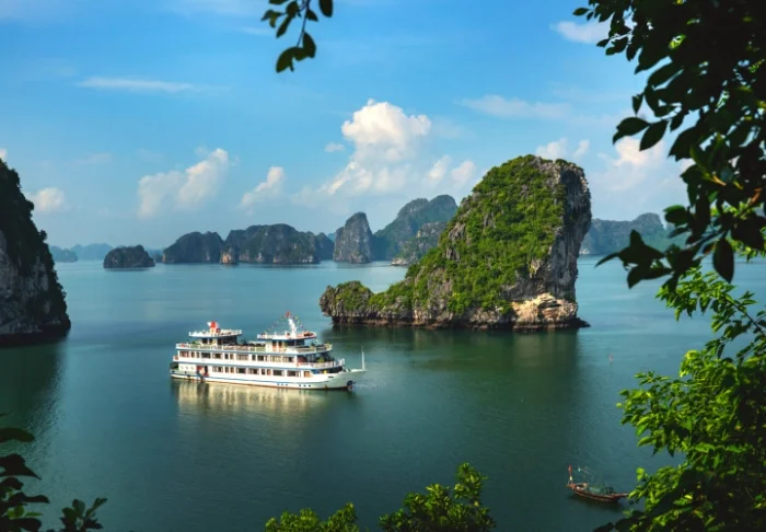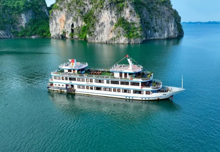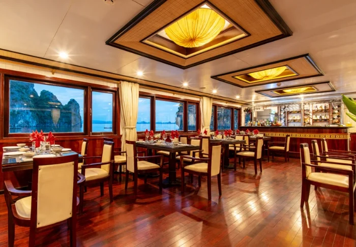Ombord finner du både soldekk og restaurant, hvor det serveres ferskfanget sjømat og vietnamesiske klassikere mens skipet sakte glir gjennom det storslåtte landskapet. På dagtid legger båten til ved øde øyer og små fiskerlandsbyer. Du kan bli med på utflukter i kajakk, dra på grottebesøk eller hoppe rett i vannet fra akterdekket. Om kvelden senker roen seg, og du kan nyte stillheten, stjernehimmelen og kanskje en kald drink på dekket.