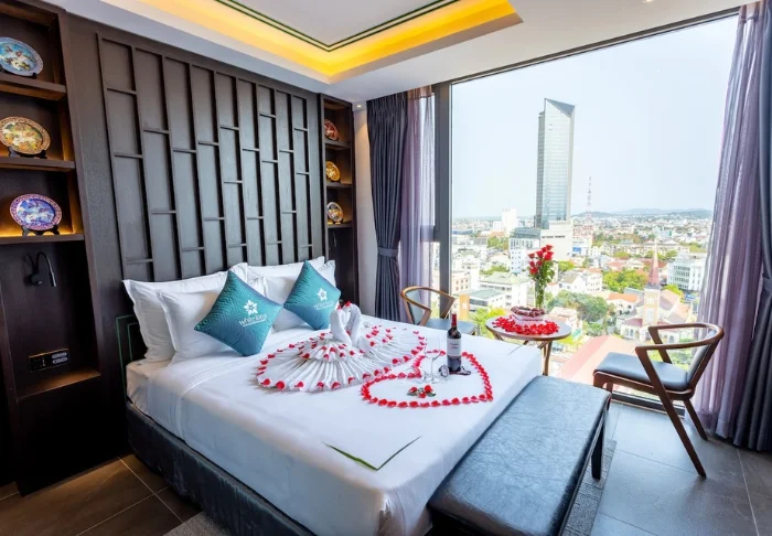 Hotellets rom er moderne innredet i vietnamesisk stil med mørke treelementer. Du bor som utgangspunkt i værelsestypen Superior Mountain View, der du fra de store vinduene på rommet kan nyte utsikten over byen og de grønne åsene som reiser seg bak. Her har du fasiliteter som aircondition, Wi-Fi, vannkoker til te og kaffe og TV. Badet er moderne, med separat dusj og toalett.