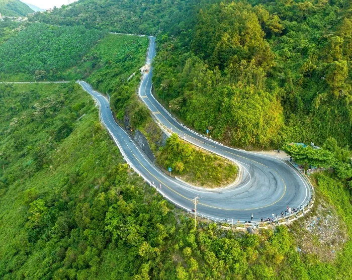 Ruten følger tidvis kysten og slynger seg oppover Truong Son-fjellene, der du krysser det spektakulære Hai Van-passet, også kjent som «passet i skyene». Herfra er utsikten intet mindre enn imponerende, med grønne fjell på den ene siden og Sør-Kinahavets blå horisont på den andre.