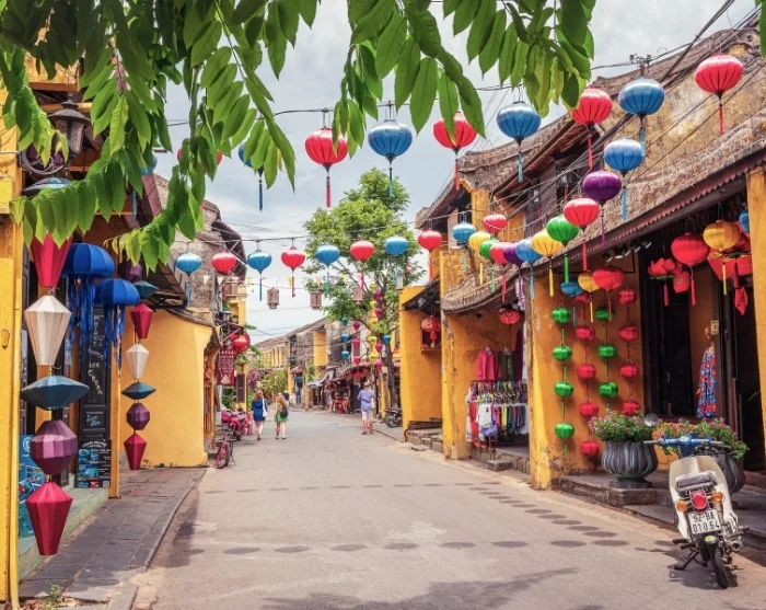 Bort fra elven brer det seg en labyrint av små, stemningsfulle gater. Her møtes du av et fargerikt mangfold av japanske trehus, kinesiske forsamlingslokaler, franske kolonitidsbygninger og de karakteristiske kjøpmannshusene. Fargerike lanterner henger som girlandere over gatene og skaper en helt spesiell atmosfære, særlig når mørket senker seg. Butikker, gatekjøkken, kafeer og små restauranter ligger side om side og inviterer til avslappede stunder og nysgjerrige oppdagelser.