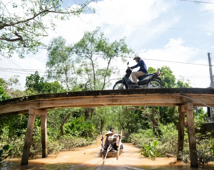 Den siste delen av reisen går til Mekongdeltaet, hvor du overnatter og reiser med båt på de smale kanalene omgitt av vannkokospalmer. Her besøker du vårt bærekraftige og sosiale utviklingsprosjekt i Vinh Long, som er etablert av vår lokale samarbeidspartner, og som du bidrar til å støtte – en prosentandel av reisens pris går nemlig direkte til det viktige arbeidet som utføres her.