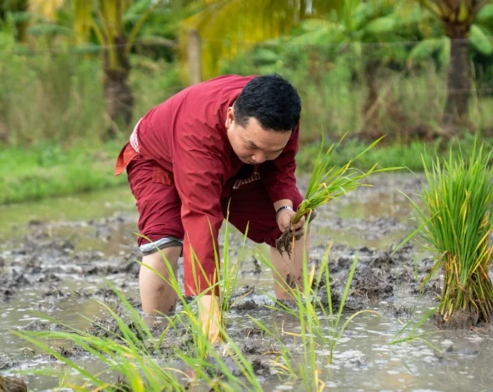 Du fortsetter til vårt sosiale bærekraftsprosjekt i Vinh Long, som har blitt etablert av vår lokale samarbeidspartner. Her venter en rolig spasertur gjennom landsbyen, hvor guiden din gir deg innblikk i prosjektet underveis. Du får også mulighet til å ta del i det tradisjonelle gårdslivet. Sammen med lokale bønder kan du prøve deg på risdyrking, enten ved å plante unge risplanter eller hjelpe til med innhøstingen, alt etter sesong. Dette er en lærerik og jordnær opplevelse som gir deg et unikt innblikk i hverdagen på den vietnamesiske landsbygda – og i arbeidet bak et bærekraftig landbruk. Når du blir med på denne turen, bidrar du samtidig til å gjøre en forskjell for familiene i Vinh Long, siden en prosentandel av reisens pris går direkte til prosjektet, som du kan lese mer om her.