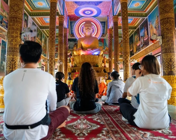 Deretter får du oppleve en fremføring av tradisjonell khmer-musikk og dans i et lokalt forsamlingshus – en stemningsfull introduksjon til områdets rike kulturarv.