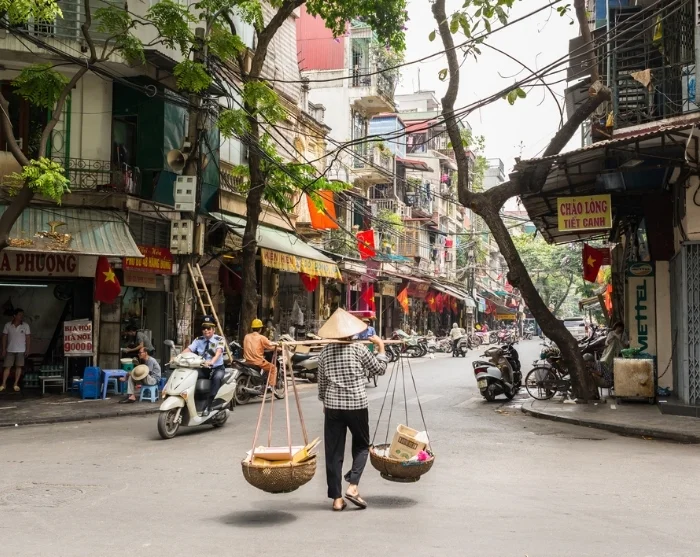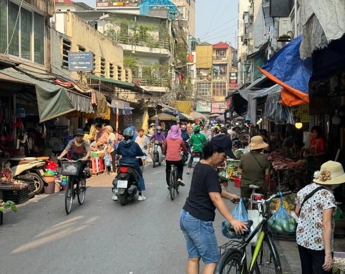 Turen fortsetter i en tradisjonell sykkeltaxi – også kjent som cyclo – gjennom det gamle kvarterets labyrint av smale gater og yrende handelsliv. Dette området er kjent for sine 36 gater, som opprinnelig fikk navn etter de varene som ble solgt her: bambus, silke, papir og blikk. Mange av gatenavnene lever fortsatt, og atmosfæren er full av lokal sjarm: hanoianerne handler, prater sammen og serverer rykende varm pho fra små gatekjøkken.