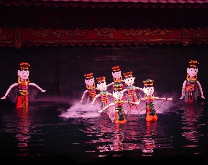Dagens sightseeing avsluttes med en forestilling i vanndukketeater – en flere hundre år gammel vietnamesisk tradisjon der dukkene danser på vannflaten til levende musikk og klassiske fortellinger.