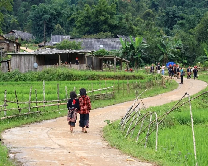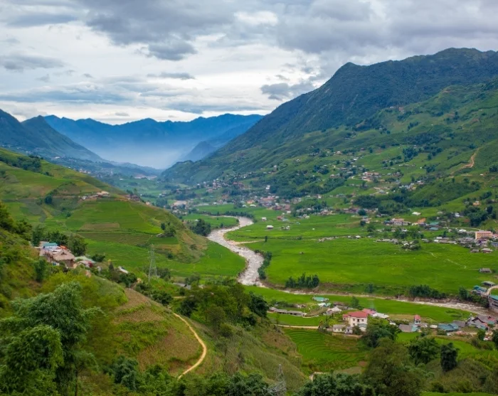 Deretter blir du kjørt til en liten landsby som ligger vakkert til i Muong Hoa-dalen. Kjøreturen tar omtrent én time. Her starter en naturskjønn fottur på halvannen til to timer langs stier som binder sammen de små landsbysamfunnene i området. Løypa slynger seg gjennom grønne fjellskråninger og frodige daler, og på klare dager kan du beundre utsikten mot det majestetiske Fansipan-fjellet. Husk gode, sklisikre sko, da stiene kan være glatte – særlig i vått vær.