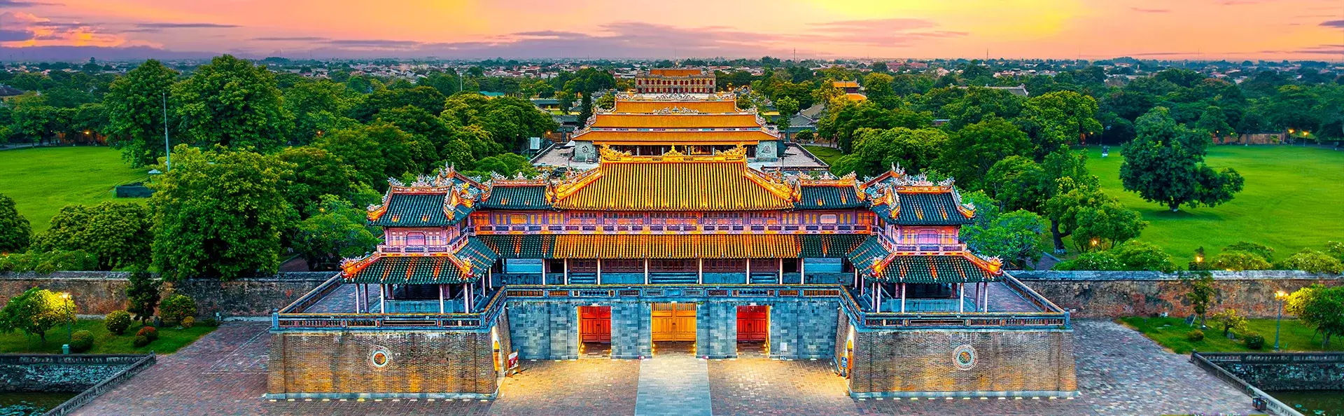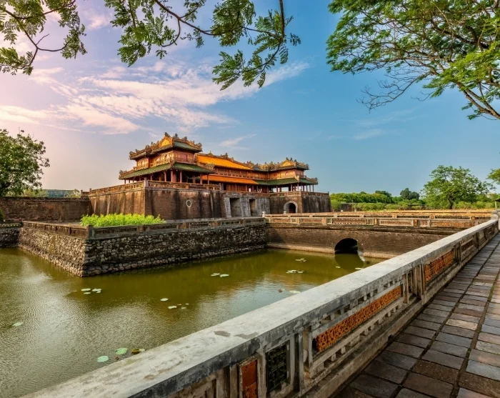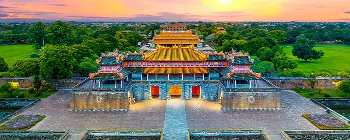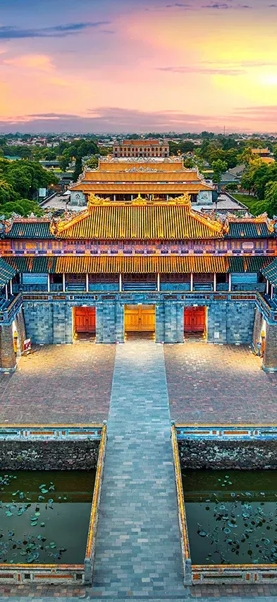 Deretter venter et minicruise på det fredelige vannspeilet i Bai Tu Long-bukten. Her seiler du mellom kalkstensklipper, utforsker grotter og nyter den eventyrlige utsikten fra dekk. Turen går videre med fly til keiserbyen Hué, hvor storslåtte gravkomplekser, pagoder og det gamle citadellet venter deg.