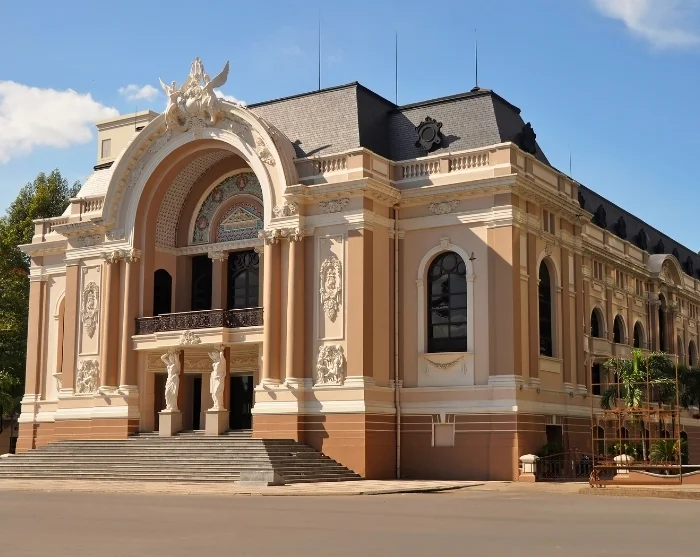 Du passerer Saigon Operahus – et arkitektonisk mesterverk fra 1901, og et levende symbol på byens kulturelle arv. Operahuset har spilt en bemerkelsesverdig rolle, fra å fungere som tilfluktsrom til senere å huse underhuset i Sør-Vietnams parlament.