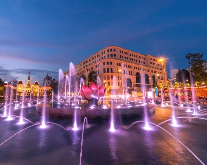 Ut mot kvelden kan du ta en rusletur langs Nguyen Hue-promenaden, omgitt av blomster, fontener og vakker arkitektur. Her kan du oppleve det autentiske bylivet når lokalbefolkningen samles med gatekunstnere, dansere og unge familier i et sjarmerende kaos. Atmosfæren er livlig, men avslappet, og det hele kulminerer rundt det opplyste rådhuset.