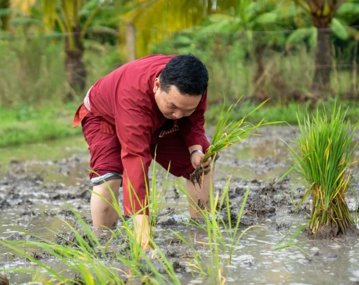 Deretter fortsetter du til vårt sosiale bærekraftsprosjekt i Vinh Long, som er etablert av vår lokale samarbeidspartner. Her venter en rolig spasertur gjennom landsbyen, hvor din guide gir deg innsikt i prosjektet underveis. Du får også mulighet til å ta del i det tradisjonelle landbrukslivet. Sammen med lokale bønder kan du prøve deg på risdyrking – enten ved å plante små risplanter eller bidra til innhøstingen, avhengig av sesong. Dette er en lærerik og jordnær opplevelse som gir deg et unikt innblikk i hverdagen på landsbygda i Vietnam og i arbeidet som ligger bak et bærekraftig jordbruk. Når du deltar på turen, bidrar du samtidig til å gjøre en forskjell for familiene i Vinh Long, siden en prosentandel av reisens pris går direkte til prosjektet, som du kan lese mer om her.
