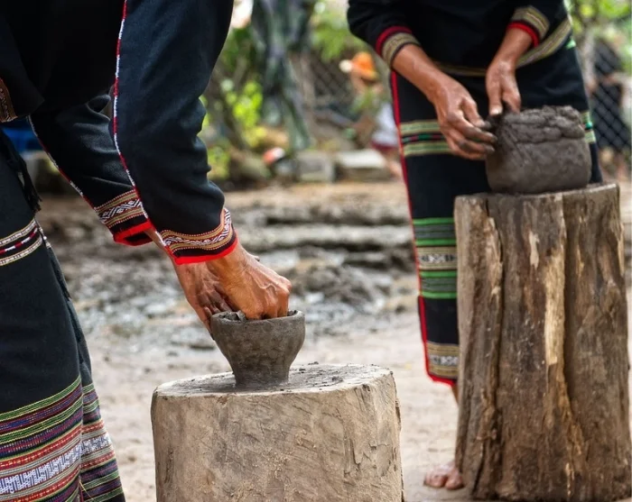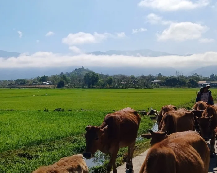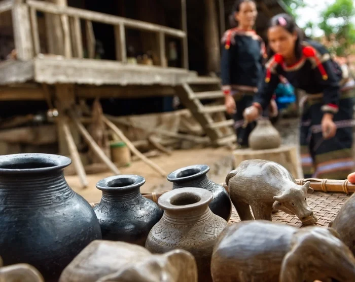 Etter frokosten sykler du mot Yang Tao-landsbyen, som ligger omtrent 12 km fra Lak Tented Camp. Hit går turen gjennom vakre grønne rismarker, hvor du kan være heldig å se flokker av bøfler og kuer. I landsbyen får du oppleve det flotte håndverket bak tradisjonell M’nong-keramikk, og du besøker kakaoplantasjer hvor du får smake på den spesielle, fermenterte kakaovinen.