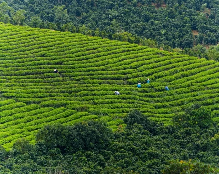 Dagen starter med en togtur til Trai Mat, hvor du underveis kan nyte panoramautsikten over Da Lats bølgende bakkelandskap. Etter ankomst til Trai Mat utforsker du det omkringliggende landskapet, før turen går videre til Cau Dat-teplantasjen, hvor grønne tebusker strekker seg så langt øyet kan se. Her får du innsikt i teens fremstillingsprosess og smaker på en nybrygget kopp te mens du nyter det storslåtte utsynet over høylandet.