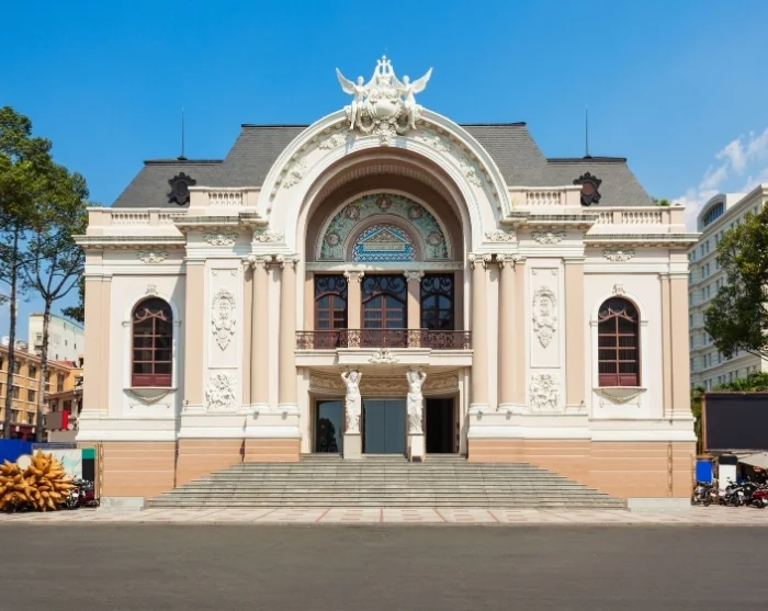 Du passerer Saigon Operahus, et arkitektonisk mesterverk fra 1901 og et levende symbol på byens rike kulturarv. Operahuset har hatt en bemerkelsesverdig fortid, bl.a. som tilfluktsrom og senere som sete for det sørvietnamesiske parlamentets underhus.