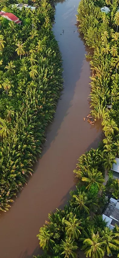 Du rekker knapt å komme ut av Ho Chi Minh City før landskapet begynner å forandre seg. Langs veien ser du grønne marker og passerer små elver og kanaler som slynger seg gjennom det flate landskapet. Det er ikke uvanlig å se lokale bønder som arbeider på markene, mens vannbøfler beiter langs veikanten, og små boder frister med fersk frukt.