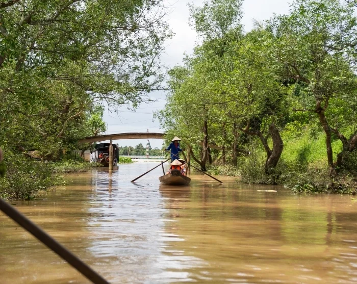 Du rekker knapt å komme ut av Ho Chi Minh City før landskapet begynner å forandre seg. Langs veien ser du grønne marker og passerer små elver og kanaler som slynger seg gjennom det flate landskapet. Det er ikke uvanlig å se lokale bønder som arbeider på markene, mens vannbøfler beiter langs veikanten, og små boder frister med fersk frukt.