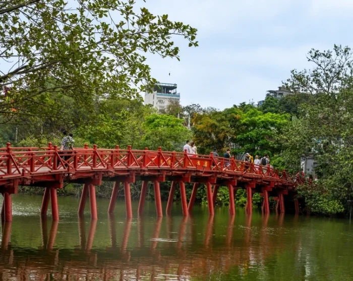 Herfra går du over den ikoniske Huc-broen til Ngoc Son-tempelet, som ligger vakkert til midt i Hoan Kiem-sjøen. Broens navn betyr «stedet som berøres av morgensolens stråler». Her får du høre sagnene om keiseren, det magiske sverdet og den enorme skilpadden, samtidig som du får et innblikk i hvordan sjøen har fått sitt navn og sin spesielle betydning for byen.