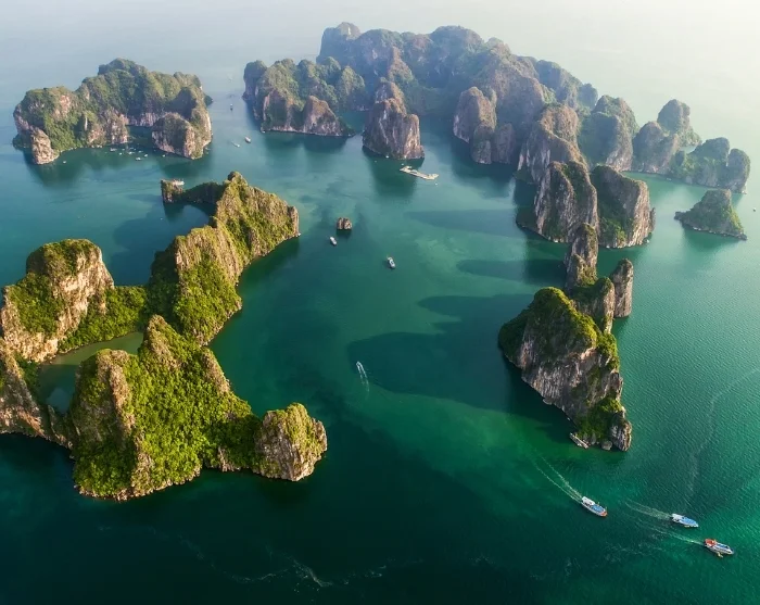 Ha Long-bukten er et av Vietnams mest unike naturområder. Her reiser hundrevis av grønnkledde kalksteinsklipper seg loddrett opp fra havet, som gjennom året skifter farge fra dypblått til jadegrønt. På den største øya, Cat Ba, ligger det flere landsbyer, mens noen av de mindre øyene rommer små fiskersamfunn. For reisende er Ha Long-bukten først og fremst et fantastisk naturområde i verdensklasse, men for vietnameserne er det også et sted fullt av legender om drager og dramatikk. Bukten dekker et område på ca. 1 500 km² og ble innskrevet på UNESCOs verdensarvliste i 1994.