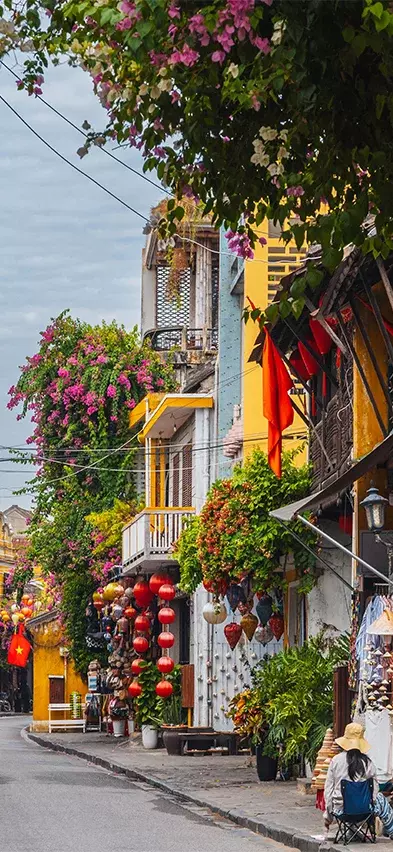 Bortenfor elven brer det seg ut en labyrint av små, stemningsfulle gater. Her møtes du av en fargerik blanding av japanske trehus, kinesiske forsamlingshus, franske kolonitidsbygninger og de karakteristiske kjøpmannshusene. Fargerike lanterner henger som girlandere over gatene og skaper en helt spesiell stemning, spesielt når mørket faller på. Butikker, gatematboder, kafeer og små restauranter ligger som perler på en snor og inviterer til avslappende øyeblikk og nysgjerrige oppdagelser.