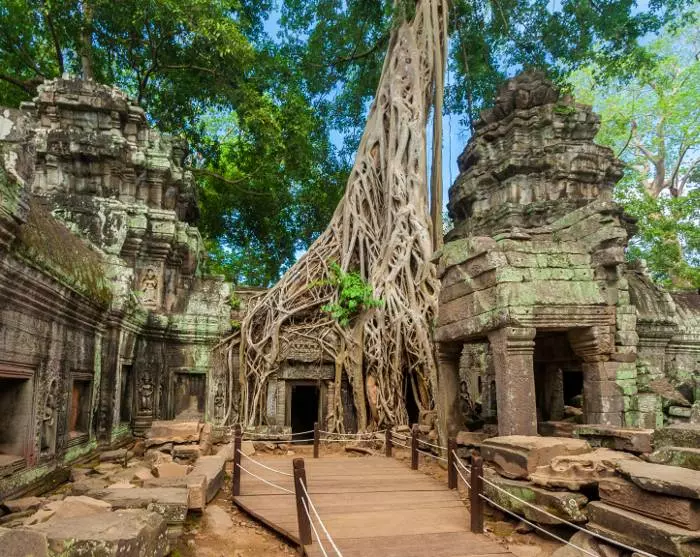 Du står opp tidlig, for i dag skal du oppleve en av verdens største severdigheter: ruinbyen Angkor, som står på UNESCOs verdensarvliste. Angkor var opprinnelig hovedstaden i Khmerriket, og ruinbyen ligger bare 5 km nord for Siem Reap, dit du blir kjørt av guiden.