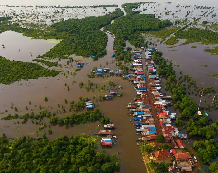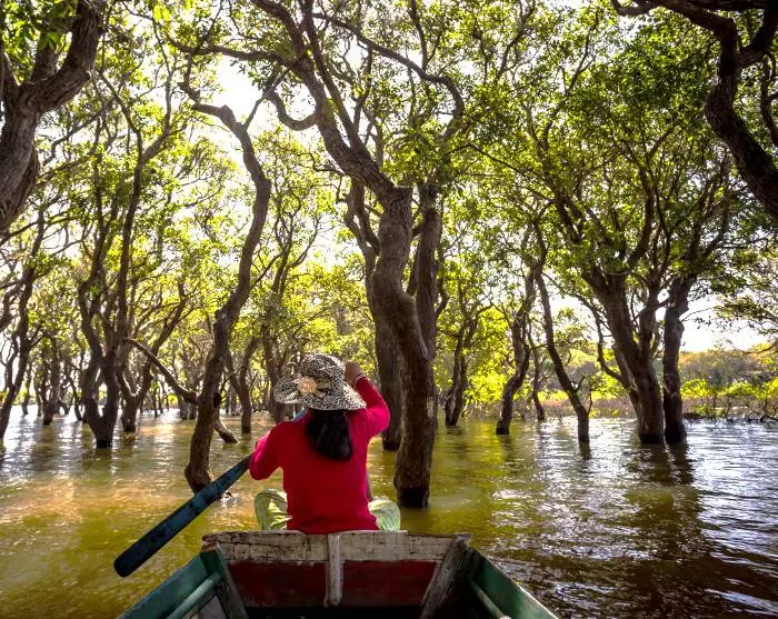 Du ankommer bredden av Tonlé Sap og stiger om bord i en båt som tar deg til en av de flytende landsbyene på innsjøen. Her kan du se hvordan livet arter seg for mange av familiene som primært lever av fiske. Her bor de langs innsjøen i fargerike hus som står på lange stylter, slik at de kan takle de store nedbørsmengdene i regntiden (fra august til begynnelsen av februar), når landsbyens smale gater forvandles til små kanaler. I den tørre årstiden (fra midten av februar til juli) med lavere vannstand er det lett å se de høye styltene.