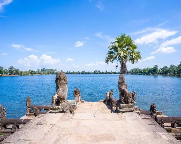 Etter sykkelturen kan du innta dagens lunsj i det fredfylte Srah Srang-reservoaret.