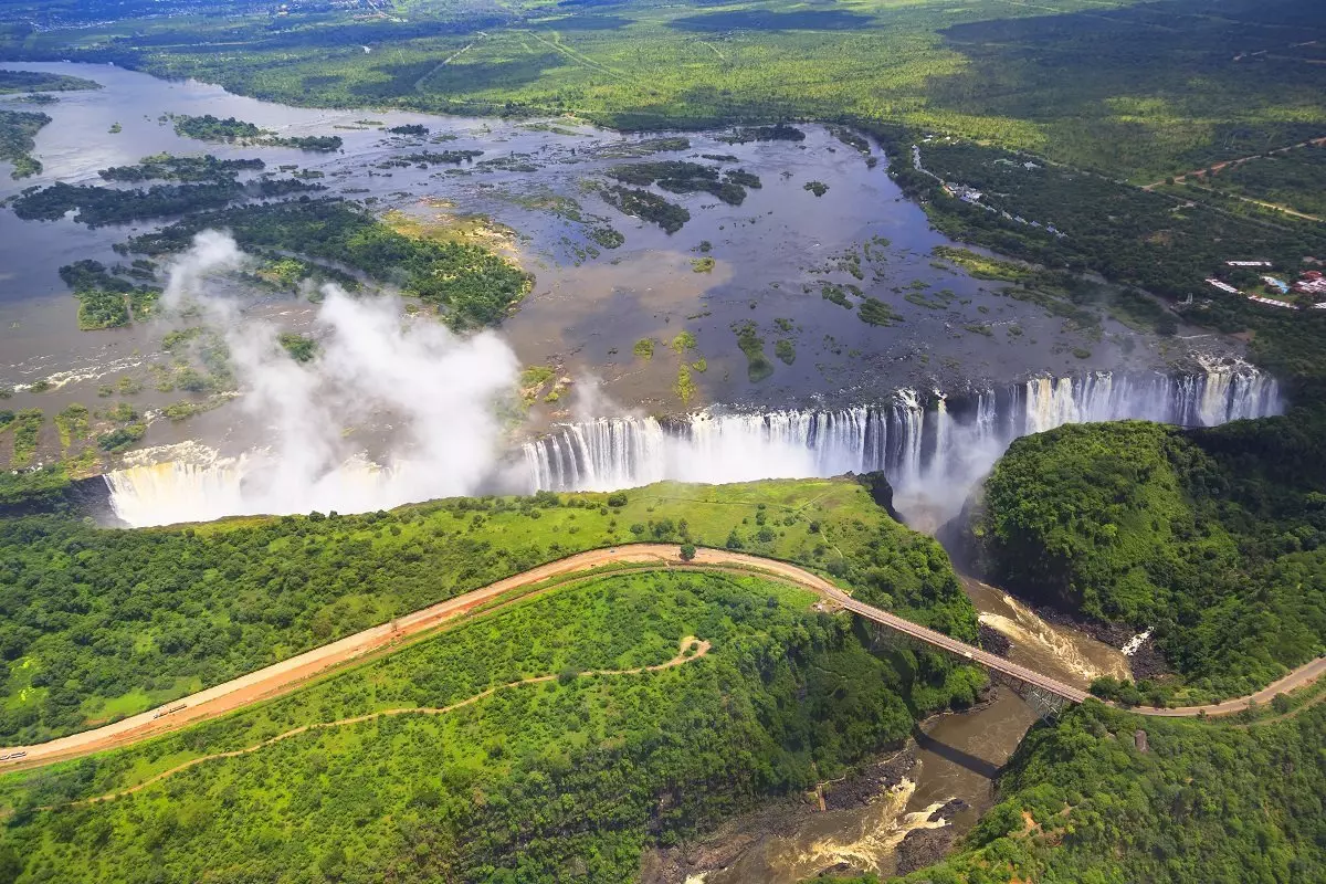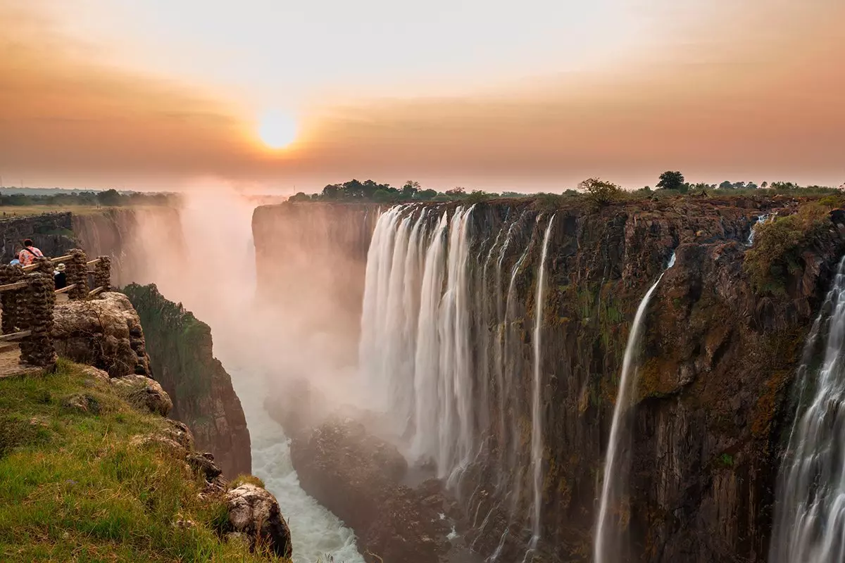 Victoria Falls er et av verdens største vannfall, og det ligger faktisk på grensen mellom Zambia og Zimbabwe.